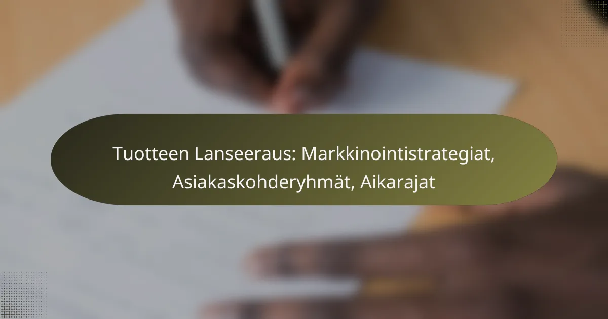 Tuotteen lanseeraus on monivaiheinen prosessi, joka vaatii huolellista suunnittelua ja toteutusta. Keskeisiä elementtejä ovat markkinatutkimus, asiakaskohderyhmien tunnistaminen ja tehokkaat markkinointistrategiat, jotka yhdessä varmistavat tuotteen menestyksen. Aikarajojen asettaminen ja jatkuva seuranta ovat myös tärkeitä, jotta voidaan arvioida kampanjoiden tehokkuutta ja tehdä tarvittavia muutoksia.